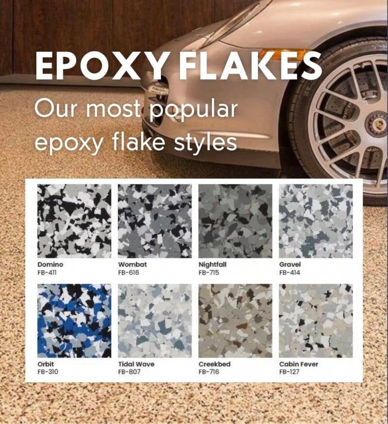 Flake epoxy floors that combine style, durability, and a slip-resistant finish — perfect for garages and more!